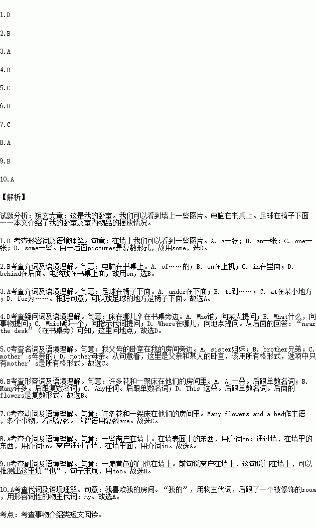 This is my bedroom. We can see pictures on the wall. The computer is the desk. The football is the chair. is the bed? It is near the desk. My father and bedroom is near my room. flowers and a bed in their room. Some windows are the wall. A yellow door is in the wall, . I like room and they like their room.