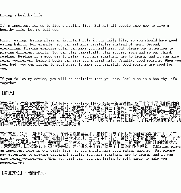 学校将举办英语演讲比赛,请你用英语写一篇短文,与同学们分享你对健康生活方式的认识。