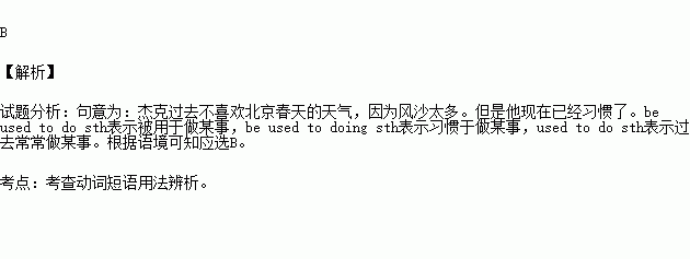 Jack _____dislike the weather in Beijing in spring,because there is so much wind and sand.But now he ________it.