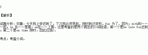 I am late ____ school today. I must get up early and get to school _____time next time .