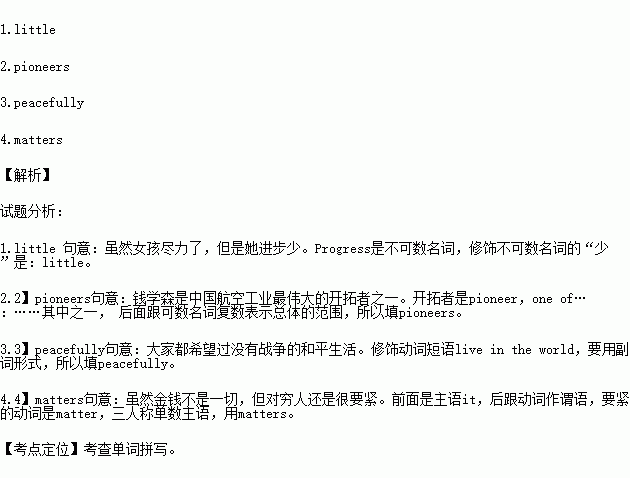 2.Qtan Xuesen is one of the greatest_________(开拓者) of China's space technology.