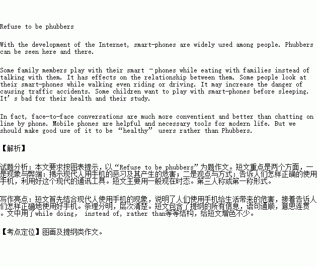 随着互联网的发展,智能手机(smart-phone)已被广泛使用。我们身边的“低头族(phubber)”随处可见。请根据图中所示,结合表格所提供的信息,以“Refuse to be phubbers”为题写一篇120词左右的短文。