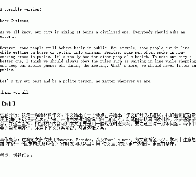 As we all know, our city is aiming at being a civilized one. Everybody should make an effort.