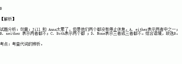 Jill and Anna were tired, but _______ of them stopped to have a rest.