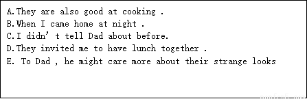 When I was 12, I got a job in a shop. On my first day at work, I didn't come home for lunch. 1.______,Dad asked' "Where did you manage your 1unch, dear? " I answered, "I made some new friends in the shop, twin brothers, their mom and dad They were my customers. 2._________________. "