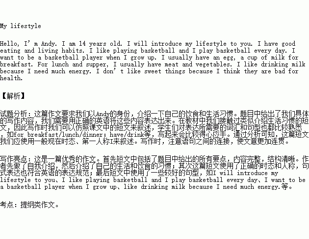 假设你是Andy,请根据下面的汉语提示以“My lifestyle”为题目写一篇有关饮食和生活习惯的小短文。