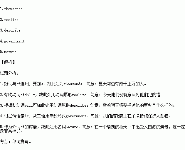 4.Our ______________ (政府) is taking action to protect the giant pandas.