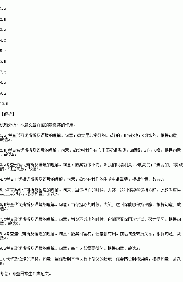 完形填空(本大题共10小题。每小题1分,共10分)