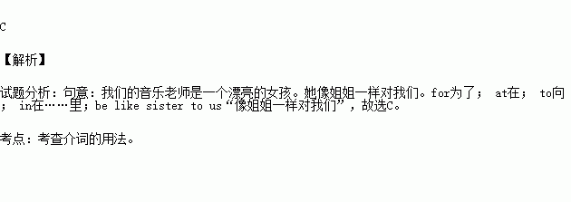 Our music teacher is a beautiful girl. She is like a sister _____us.