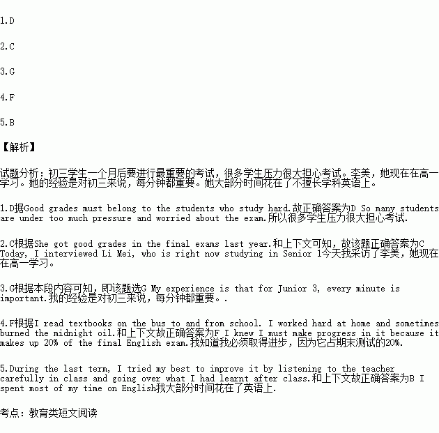 2. She got good grades in the final exams last year. I hope her experience will be helpful. Here is what Li Mei said when she was interviewed: