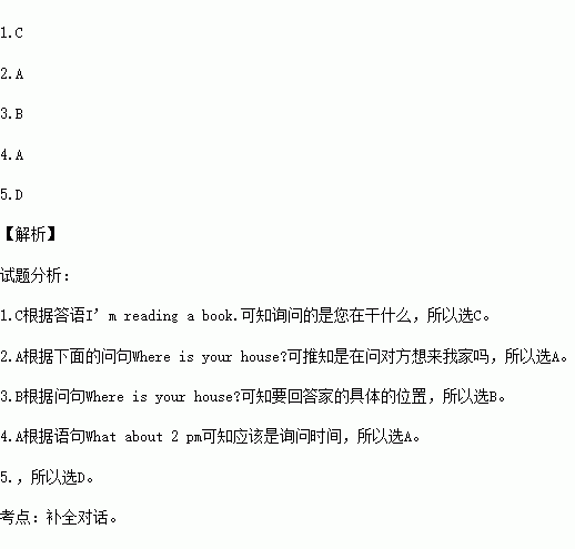 补全对话 从每题A、B、C、D中, 选出一个能够填入对话空白处的最佳选项。(5分)
