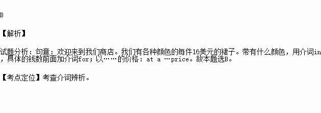 Welcome to our store. We have skirts ___________all colors ___________$16 each.