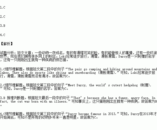 Can animals become online stars in one night? Look at the following animals. Some have funny faces. Some can do amazing things. Others travel around the world. And thanks to(多亏了) their owners, they all have many fans on the Internet. Let’s find out who they are.