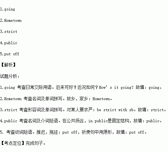 根据所给的汉语内容,用英语完成下列句子。(每空限填一词)(共5小题,每小题1分,共5分)