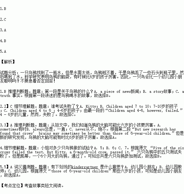 3.From the text, we know crows’ brains may ______ be better than those of 6-year-old children.