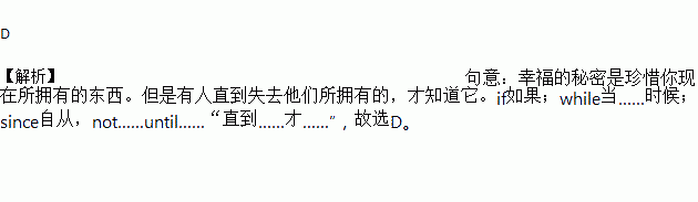 The secret of happiness is to treasure the things you have now. But someone won’t know it _______ they lost what they own.