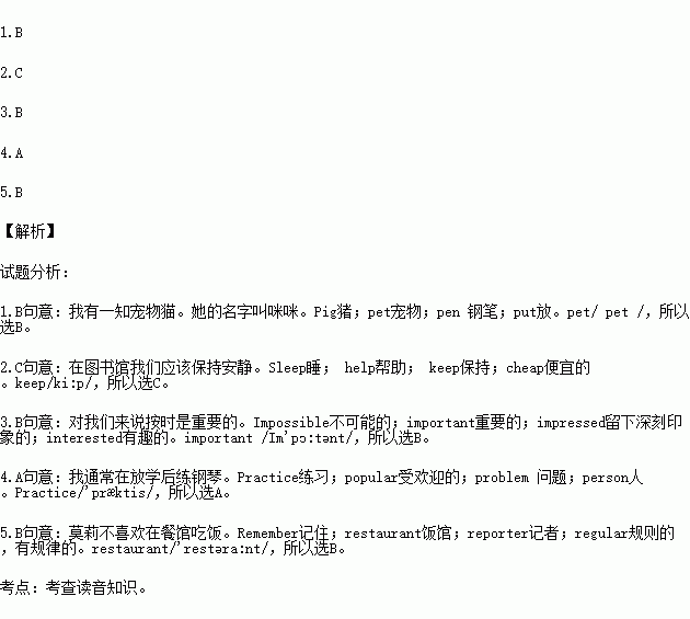 读音选词 根据所给句意和音标,从每题A.B.C.D四个选项中,选出一个最佳答案。(5分)