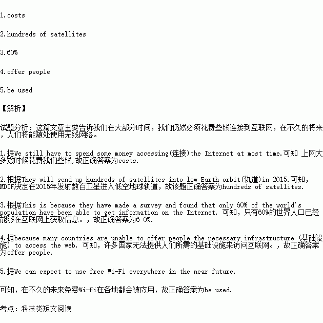 A rich, powerful organization in the USA called the Media Development Investment Fund (MDIF) has decided to change the age of online computing (计算) completely by giving free Wi-Fi to every person on Earth. They will send up hundreds of satellites into low Earth orbit(轨道)in 2015.