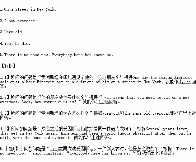 “Mr.Einstein.”said the friend.“it seems that you need to put on a new overcoat.Look,how worn-out it is!”
