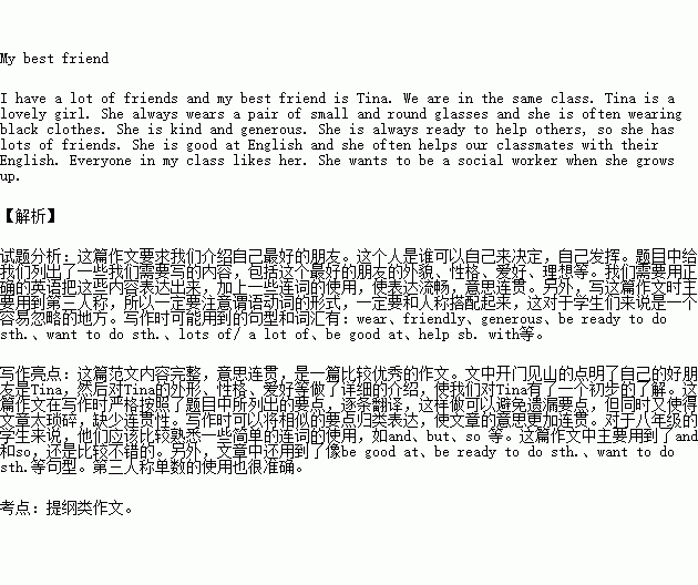 以My best friend 为题,用英语写一篇短文,词数80左右。内容包括以下几个要点,可适当发挥。