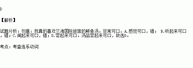 I really enjoy the fresh fish soup in Lanhai International Hotel. It ________ delicious.