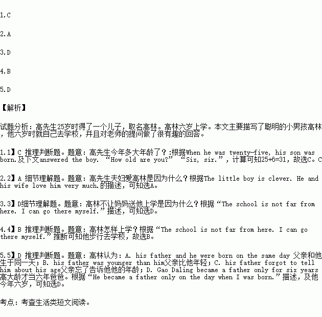At school a teacher met the little boy and asked, “What’s your name, my little friend?” “Gao Ling, sir.” answered the boy. “How old are you?” “Six, sir.” “What’s your father’s name?” “Gao Daling, sir.” “How old is he?” “He is six, too, sir.” “Oh,” the teacher said in surprise. “Is he as old as you?”
