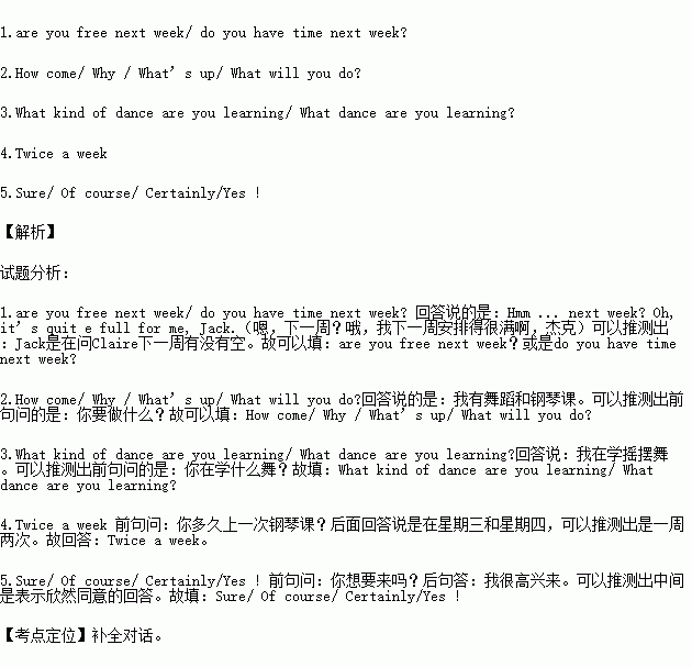 Jack: Hi, Claire, 1.______________________________?