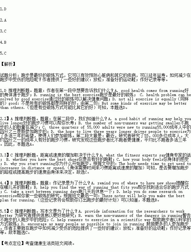 Recently, researchers studied more than 55,000 adults. About a quarter of the adults have a good habit of running. The study found these runners were much healthier than non-runners. In fact, the runners lived, on average(平均), three years longer than the non-runners.