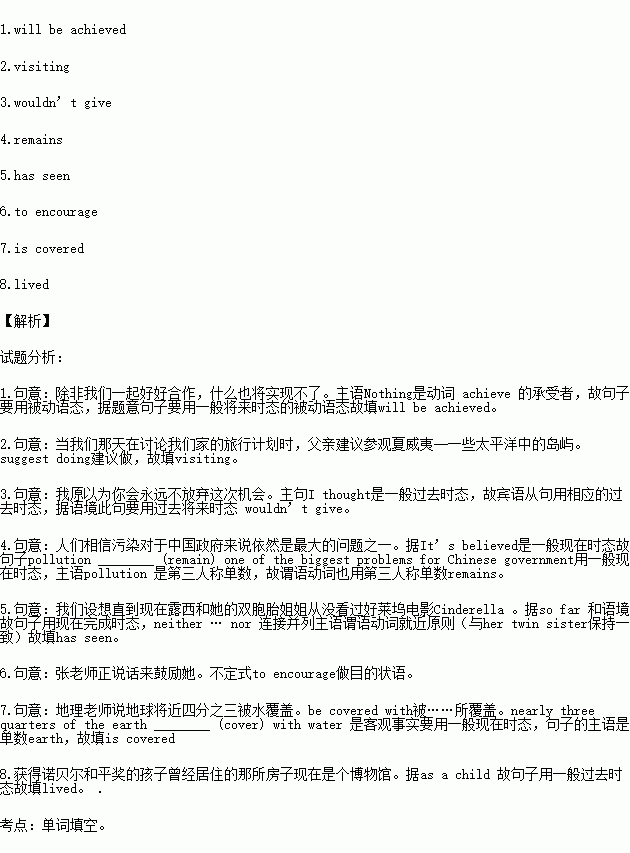 动词填空 用括号内所给动词的适当形式填空。(本大题共8小题,每小题1分,共8分)