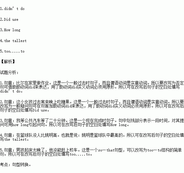 改写句子 按括号内的要求完成改写后的句子,每空一词。(5分)