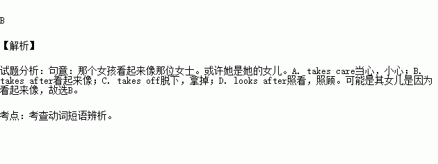 A. takes care B. takes after