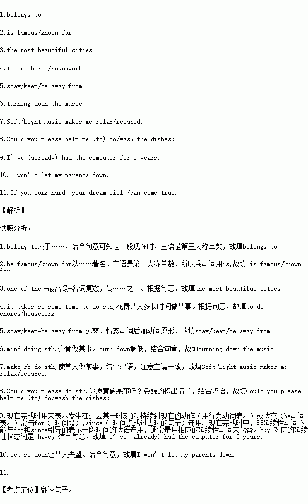 根据所给中文完成句子翻译,并将其答案写在答题卡的相应位置上。