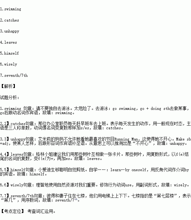 1.Please don’t go _________(swim) on your own. It’s too dangerous.