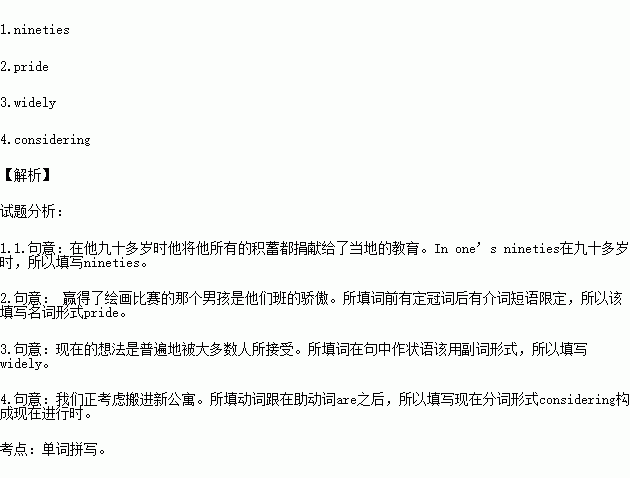 1.He donated all his savings to local education in his ______ (九十).