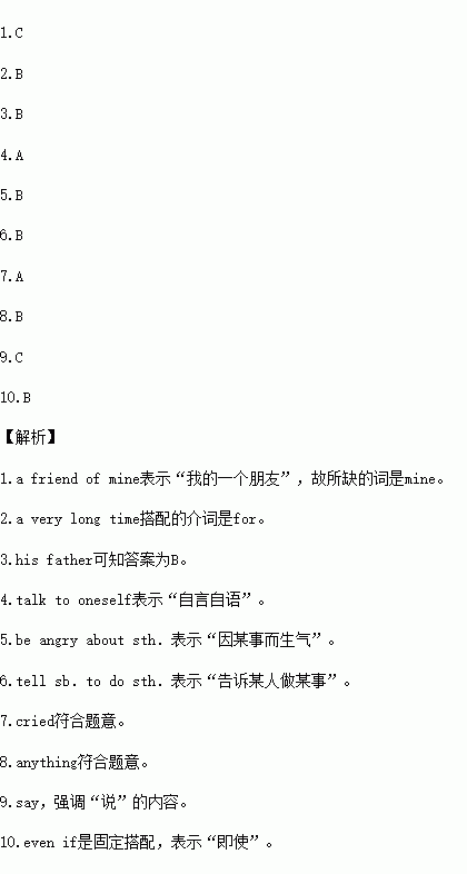 His father was badly ill in hospital.His father couldn’t sleep at night and often____4.____to himself.My friend was angry____5.___these and told his father____6.____talking.But after his father stopped talking,he was unconscious(无意识的).My friend was very sad.He thought it was his fault(错误).My friend____7.____like a baby on the telephone.He said that he would do___8.___if his father could wake up.