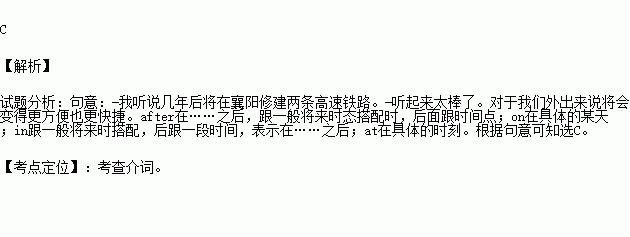 ---I hear two high speed railways will be built in Xiangyang __________ a few years.