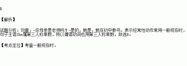 -- Yes, she is. She _________ at a junior high school.