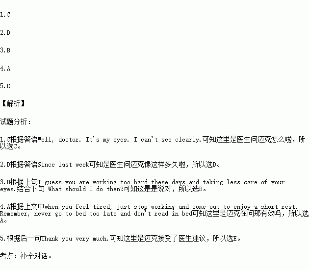 W: Let me have a look. Oh, Mike, I guess you are working too hard these days and taking less care of your eyes.