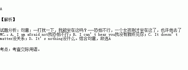 .—Excuse me. Can I take this seat? — __ A girl sat here just now. Maybe she went to WC.
