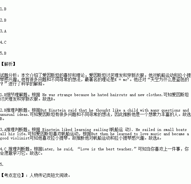 Einstein liked learning sailing(帆船运 动). He sailed in small boats all his life. He