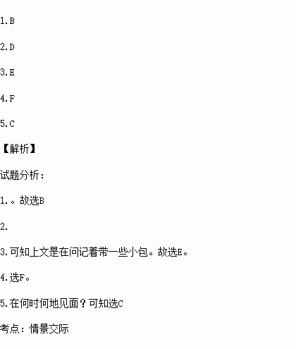 从所给的句子中选择恰当的句子完成下面对话(共5分,每小题1分)