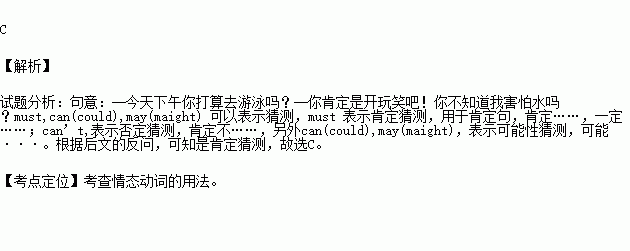 —You ______ be joking! Don't you know I'm afraid of water?