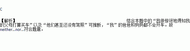 I felt very surprised to know my parents were going to buy a car.You know,________my father________my mother can drive a car.They even don’t have driving licenses.