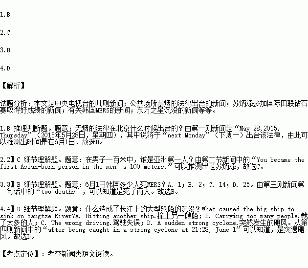 CCTV News June 2, 2015, Tuesday It’s reported that the first two deaths from an outbreak of MERS (中东呼吸综合症) on June 1st in South Koren. So far, the number of new confirmed(感染)cases is 25 in total. |