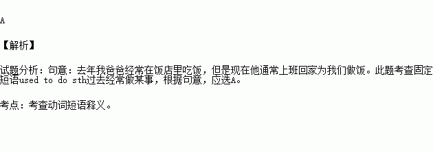 My father _______ dinner at restaurants last year, but now he usually comes back home from work and cooks supper for us.