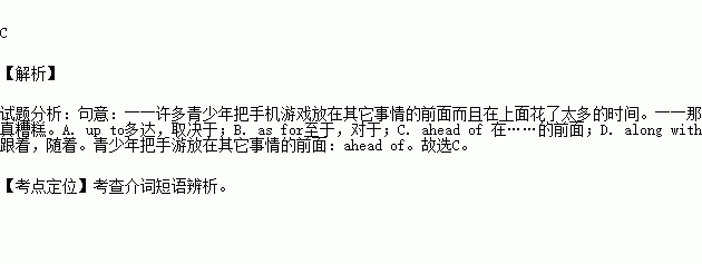 ---Many teenagers put mobile gaming _________ other things and spend too much time on it.