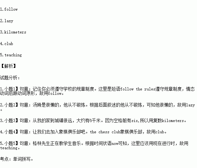 根据汉语提示及首字母提示完成单词(每小题1分,满分5分)