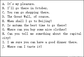 从A-J 选项中选出能填入空白处的最佳选项补全对话。 ( 选项中有两项是多余的)