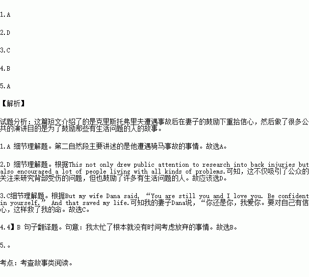 4.By saying "I'm far too busy to think of giving up!", Reeve means _______.