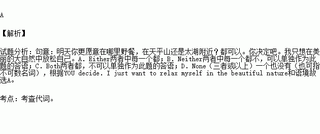 —Where do you prefer to have a picnic tomorrow ,on Tianping Hill or near Taihu Lake?